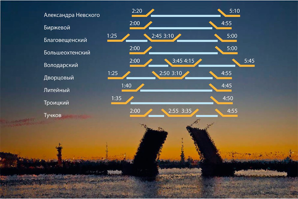 С конца марта некоторые городские переправы разводят в рамках подготовки к грядущему сезону навигации, чтобы проверить их механизмы. Нева и её притоки, что входят в Волго-Балтийский водный путь, готовятся вновь принимать корабли. Мостотрест сообщает, что 10 апреля начнётся постоянная навигация. По графику начнут разводить переправы на Неве и Малой Неве. На рукавах Невы разведение начнётся позднее — 20 апреля.